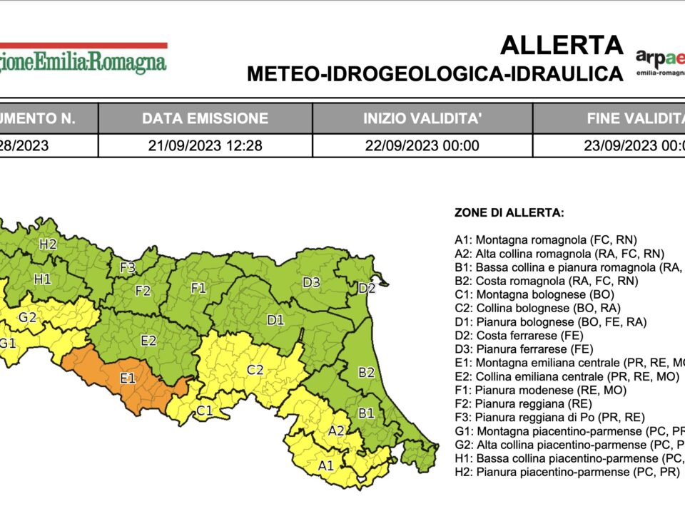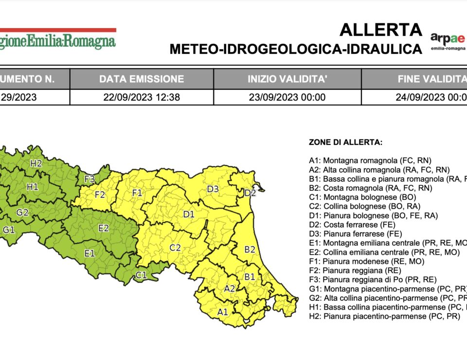 Per domenica 24 settembre è stata emessa l’allerta meteo n.130/2023 valida sul territorio regionale dell’Emilia-Romagna per temporali. Nelle prime ore...