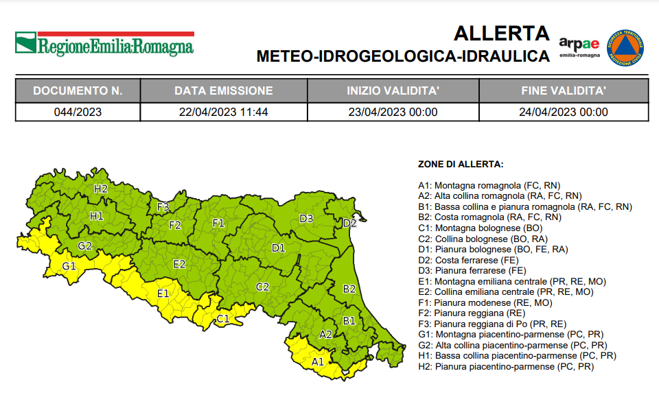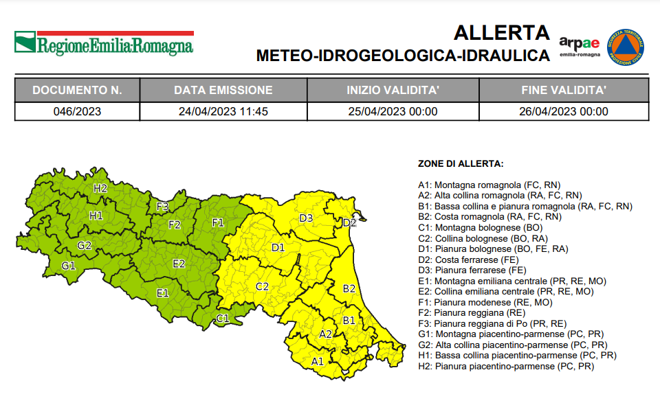 Condividiamo le Allerte meteo emanate dalla Protezione Civile della regione Emilia-Romagna