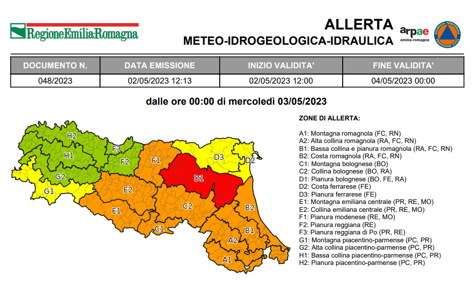 Per mercoledì 17 maggio è stata emessa l’allerta meteo n.062/2023 valida sul territorio regionale dell’Emilia-Romagna per piene dei fiumi, frane...
