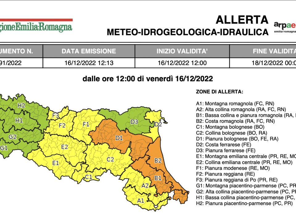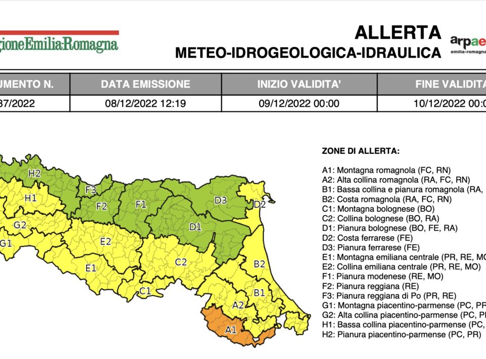 08 Dicembre 2022 Allerta meteo per vento, piene, frane, gelicidio e mareggiate Per la giornata di venerdì 9 dicembre è stata emessa l’allerta meteo n.087/2022 valida sul territorio dell’Emilia-Romagna per vento, piene...