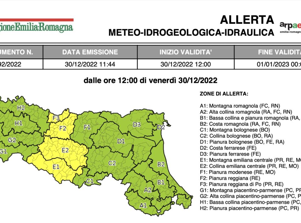 30 Dicembre 2022 Allerta idraulica e idrogeologica dalle 12 alle 24 di oggi, venerdì 30 Per la giornata di oggi, venerdì 30 dicembre, è stata emessa l’allerta n.092/2022 per criticità idraulica e idrogeologica valida dalle...