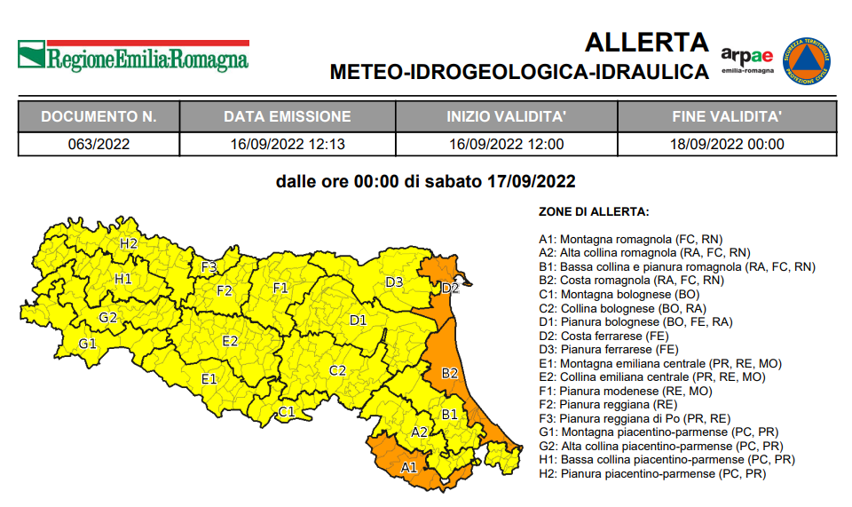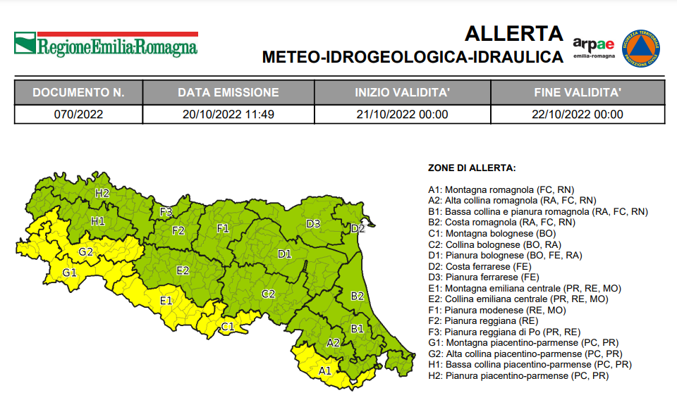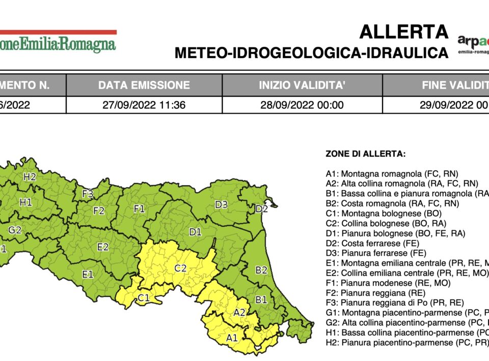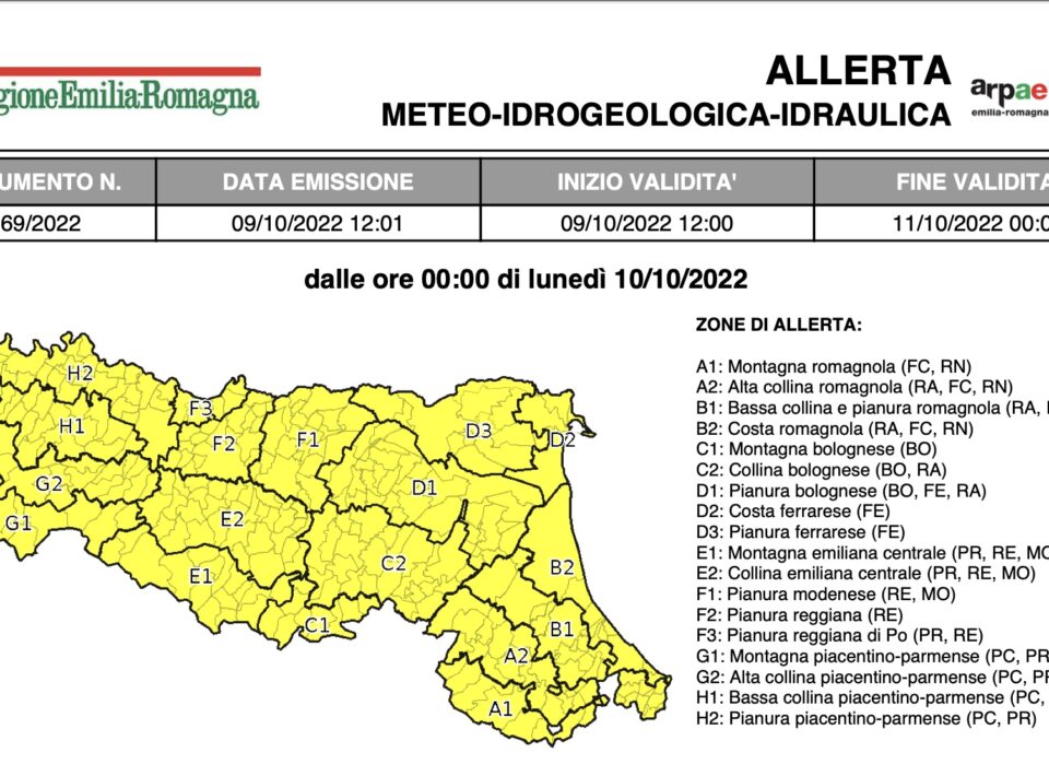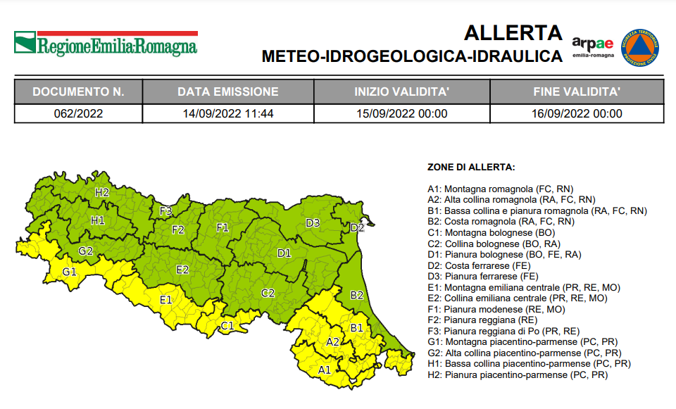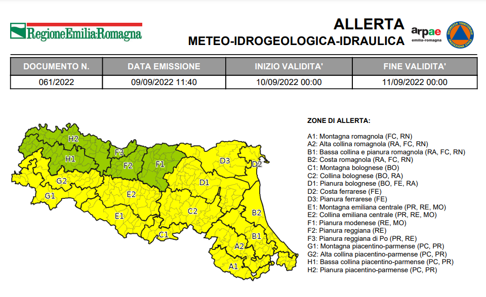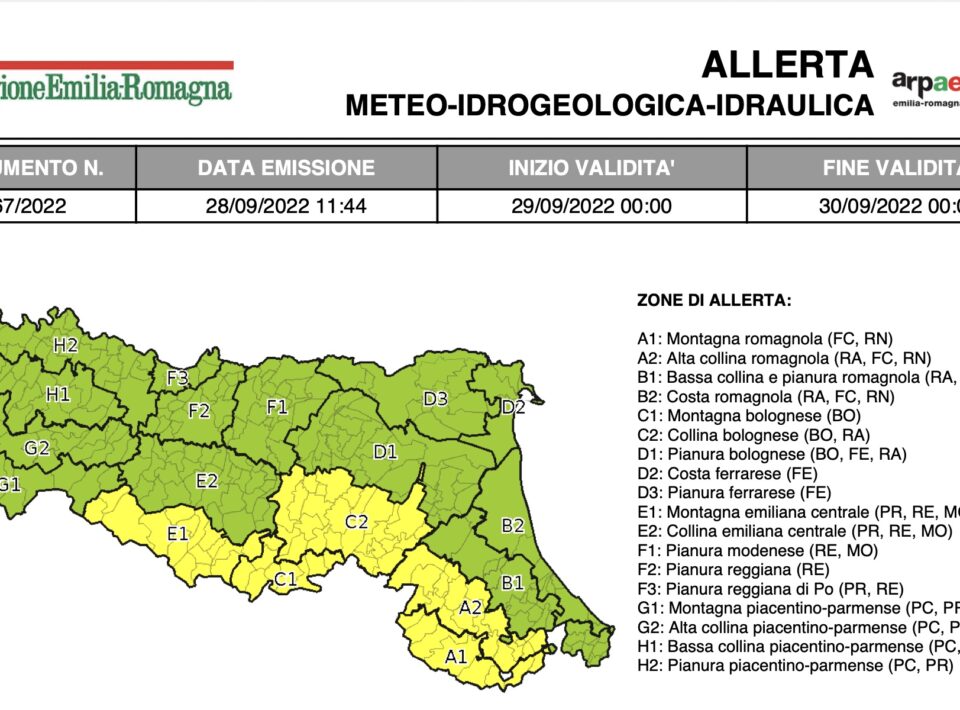Condividiamo le Allerte meteo emanate dalla Protezione Civile della regione Emilia-Romagna