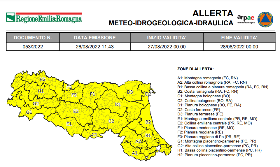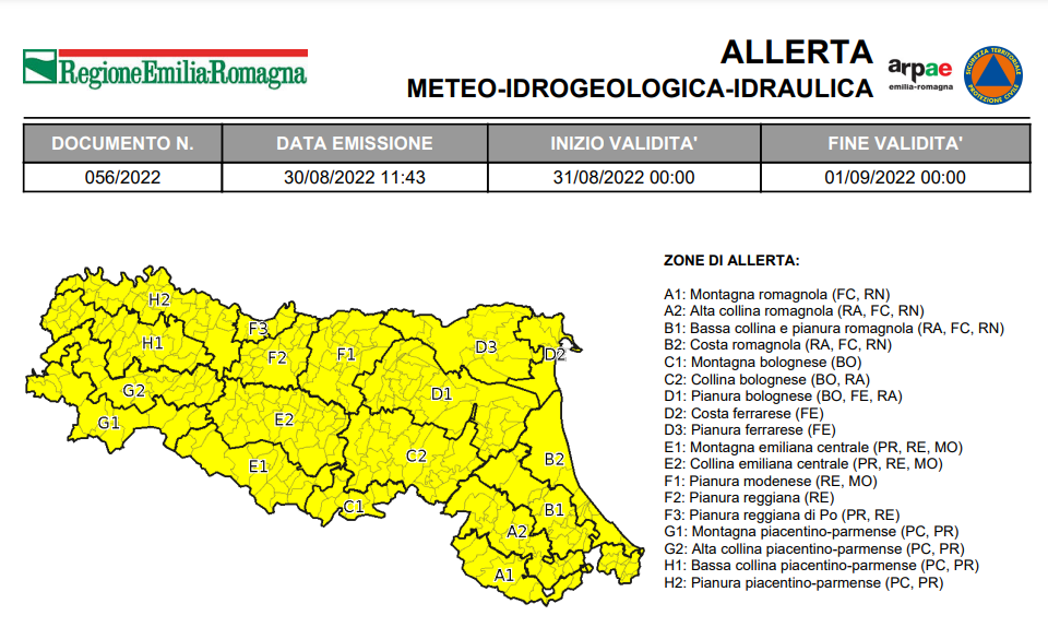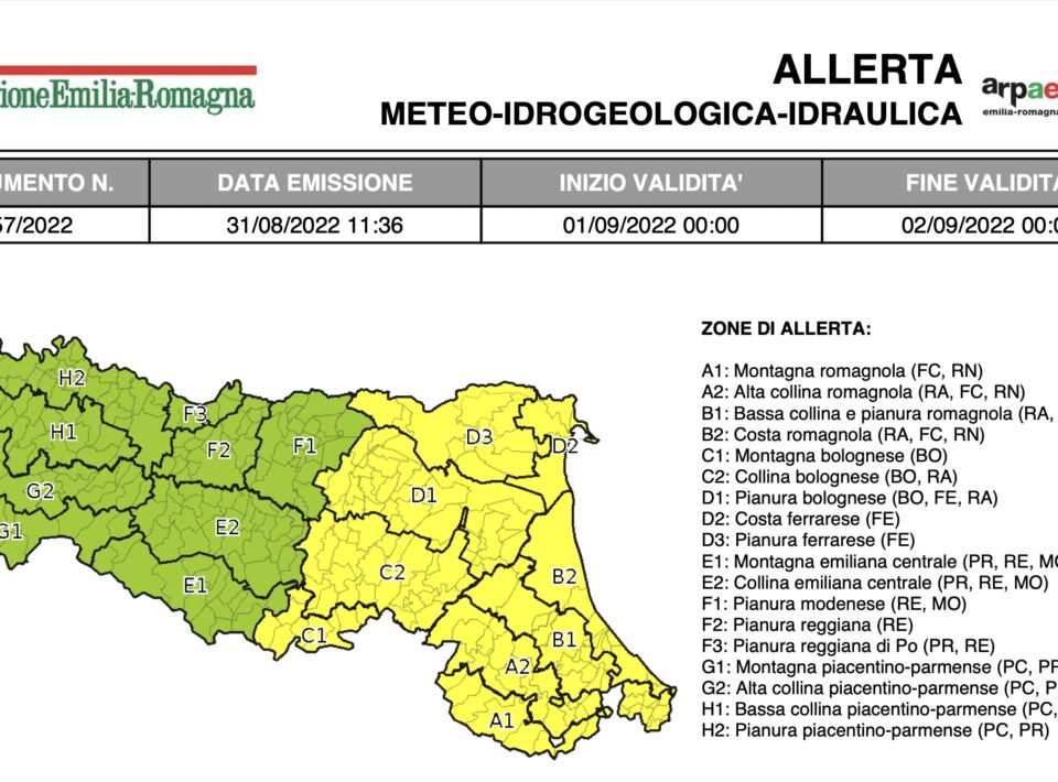 Per la giornata di giovedì 1 settembre è stata emessa l’allerta n.057\2022 valida sul territorio regionale dell’Emilia-Romagna per temporali. A partire dalle...