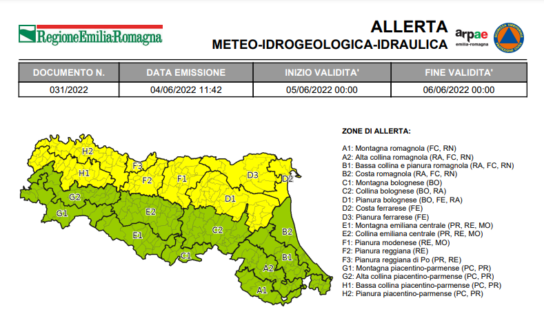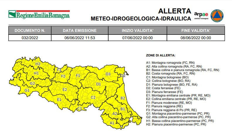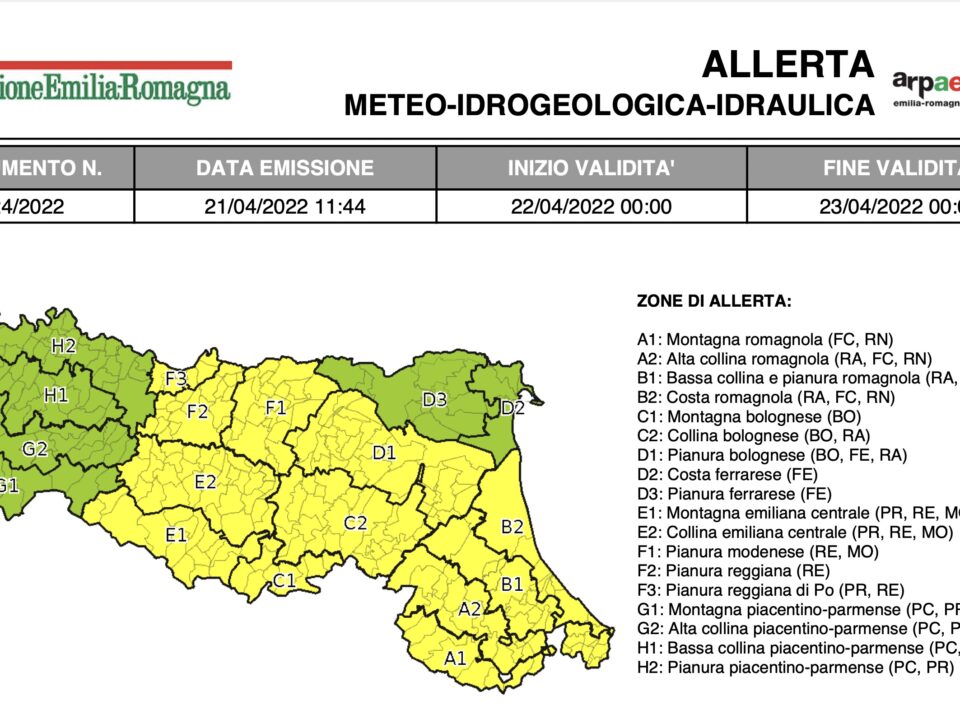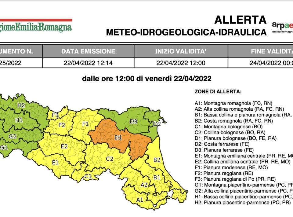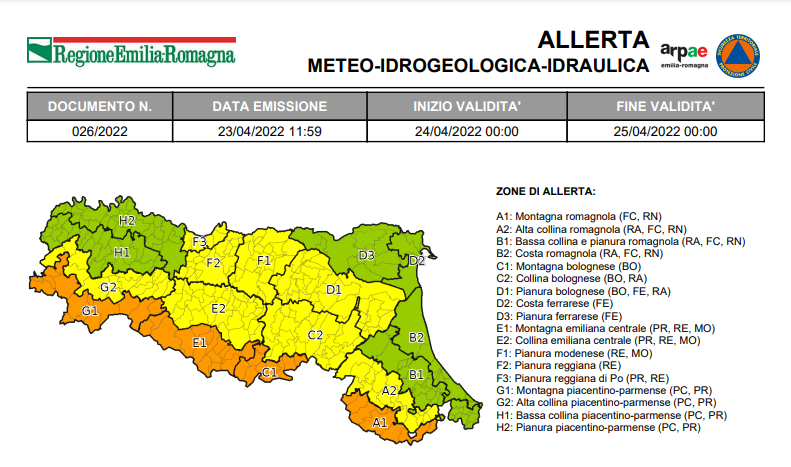 Condividiamo le Allerte meteo emanate dalla Protezione Civile della regione Emilia-Romagna