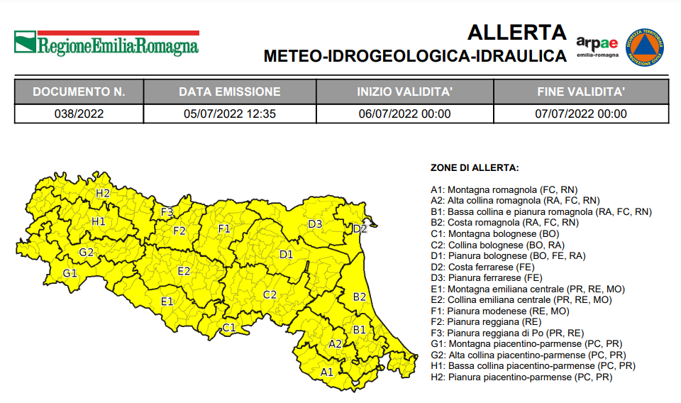 Per la giornata di mercoledì 6 luglio è stata emessa l’allerta meteo n.038/2022 valida sul territorio regionale dell’Emilia-Romagna per temporali....