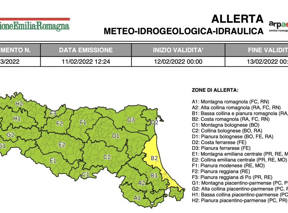 11 Febbraio 2022 Sabato 12 febbraio allerta meteo per stato del mare Per la giornata di sabato 12 febbraio è stata emessa l’allerta n.013\2022 valida sul territorio regionale dell’Emilia-Romagna per stato del...