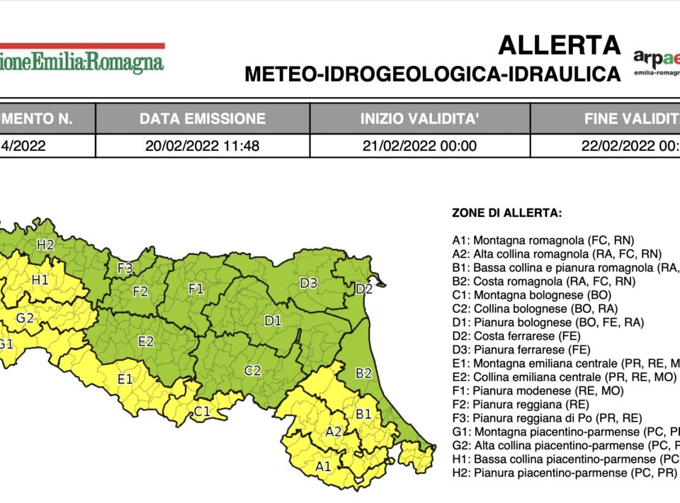 20 Febbraio 2022 Lunedì 21 febbraio allerta meteo per vento Per la giornata di lunedì 21 febbraio è stata emessa l’allerta n.014\2022 valida sul territorio regionale dell’Emilia-Romagna per vento. Nella...