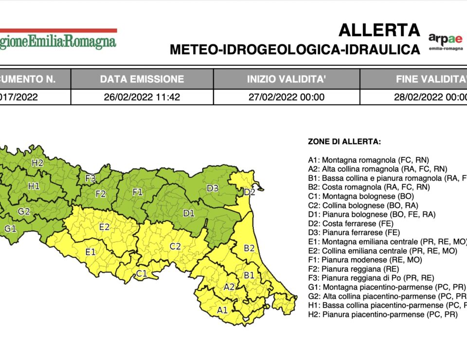 25 Febbraio 2022 Sabato 26 febbraio allerta meteo per vento Per sabato 26 febbraio è stata emessa l’allerta n.016\2022 valida sul territorio regionale dell’Emilia-Romagna per vento. Per la giornata di...