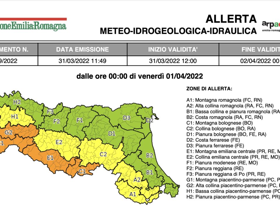 30 Marzo 2022 Giovedì 31 marzo allerta meteo per piene e frane Per la giornata di giovedì 31 marzo è stata emessa l’allerta meteo n.018\2022 valida sul territorio regionale dell’Emilia-Romagna per piene...