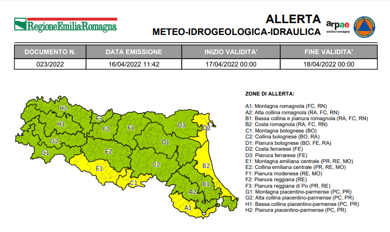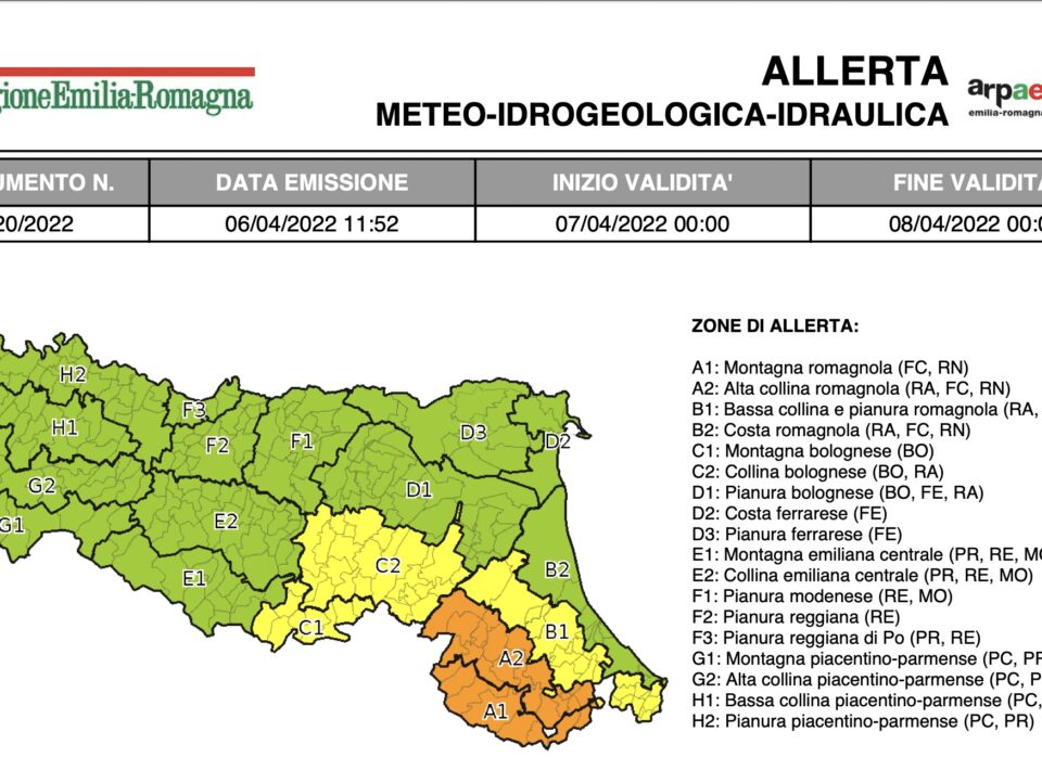 06 Aprile 2022 Per giovedì 7 aprile allerta meteo per vento Per la giornata di giovedì 7 aprile è stata emessa l’allerta meteo n.20\2022 valida sul territorio regionale dell’Emilia-Romagna per vento....