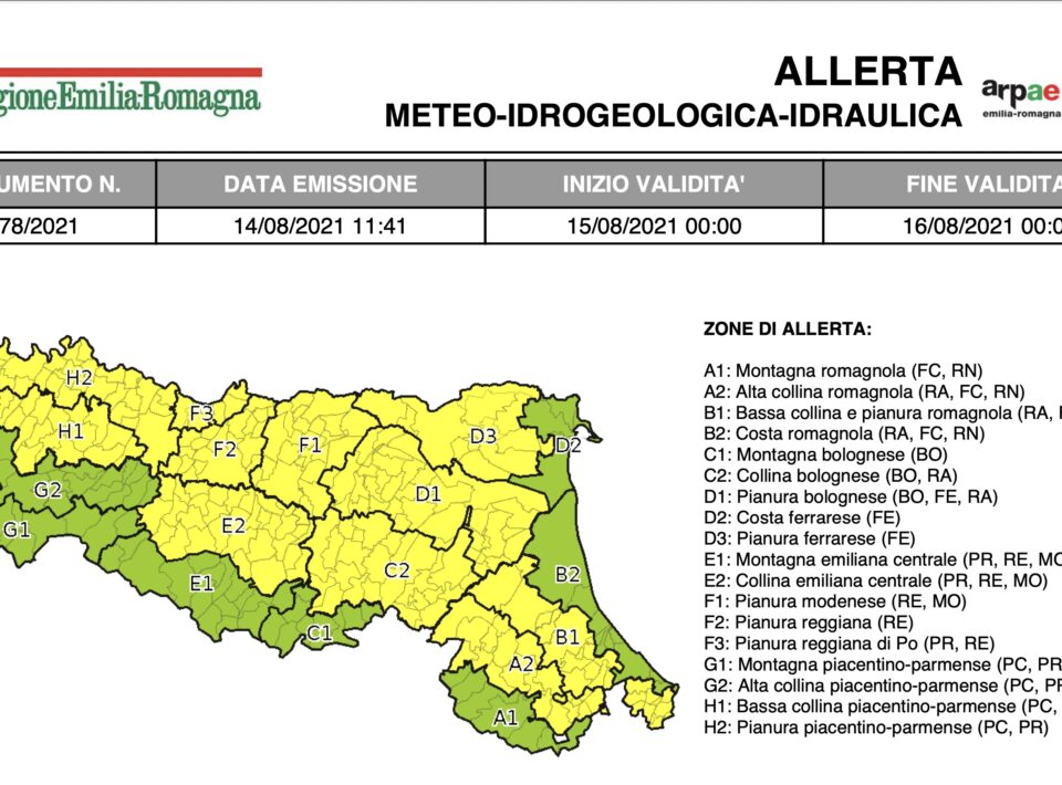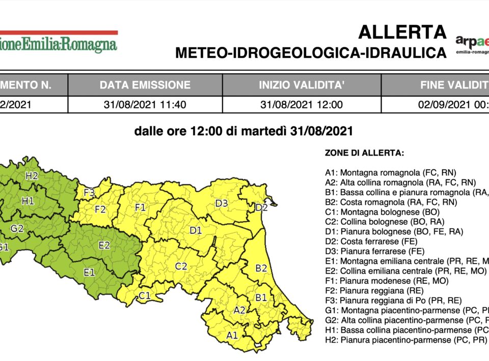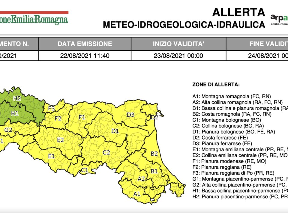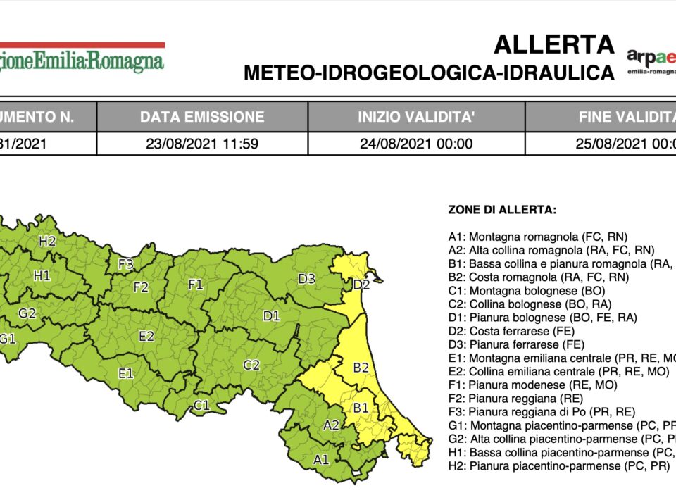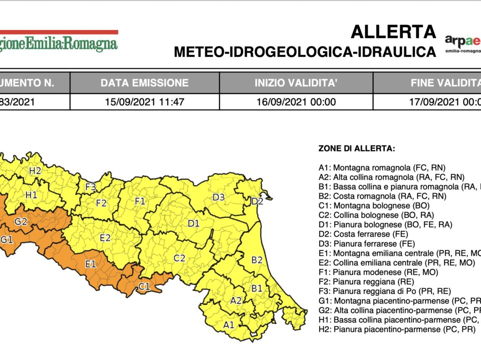 Condividiamo le Allerte meteo emanate dalla Protezione Civile della regione Emilia-Romagna