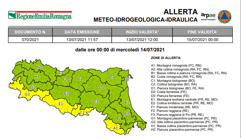 12 Luglio 2021 Allerta meteo per martedì 13 luglio: temporali Per la giornata di martedì 13 luglio è stata emessa l’allerta meteo n.069\2021 valida sul territorio dell’Emilia-Romagna per temporali. Per...