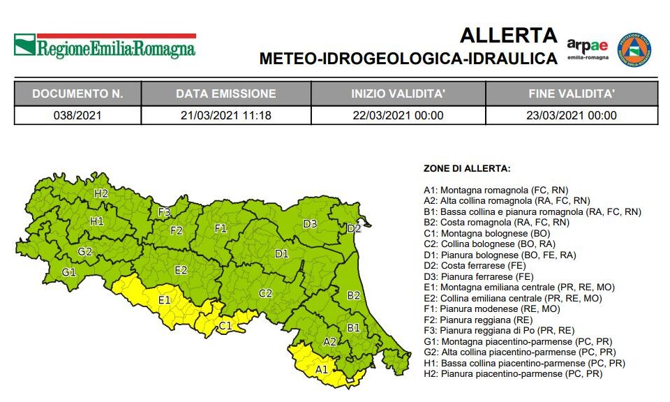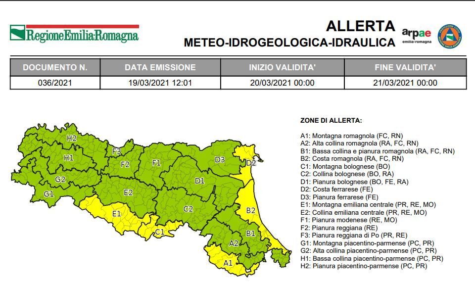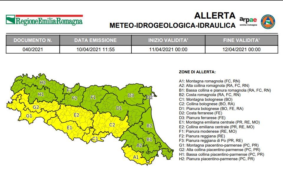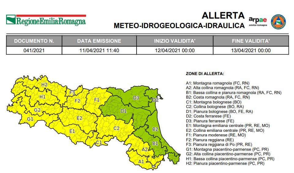 10 Aprile 2021 Allerta della Protezione Civile: piene dei fiumi, frane e vento La Protezione Civile ha emesso un’allerta valida dalle ore 00:00 di domenica 11 alle ore 00:00 di lunedì 12 aprile...