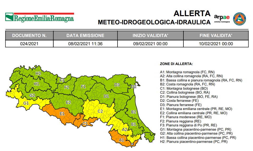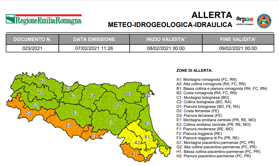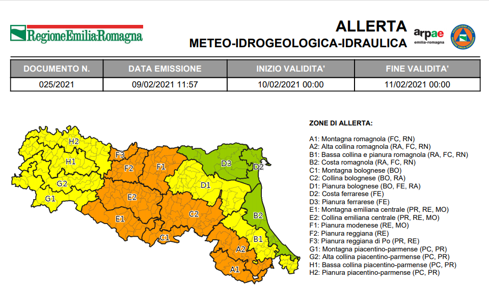 09 Febbraio 2021 Allerta della Protezione Civile: piene, frane, temporali, vento La Protezione Civile ha emesso un’allerta valida dalle ore 00:00 di mercoledì 10 alle ore 00:00 di giovedì 11 febbraio...