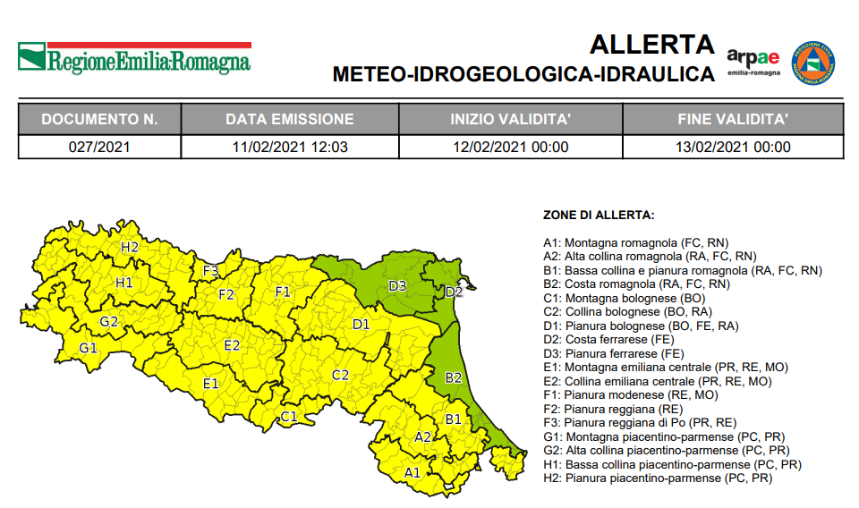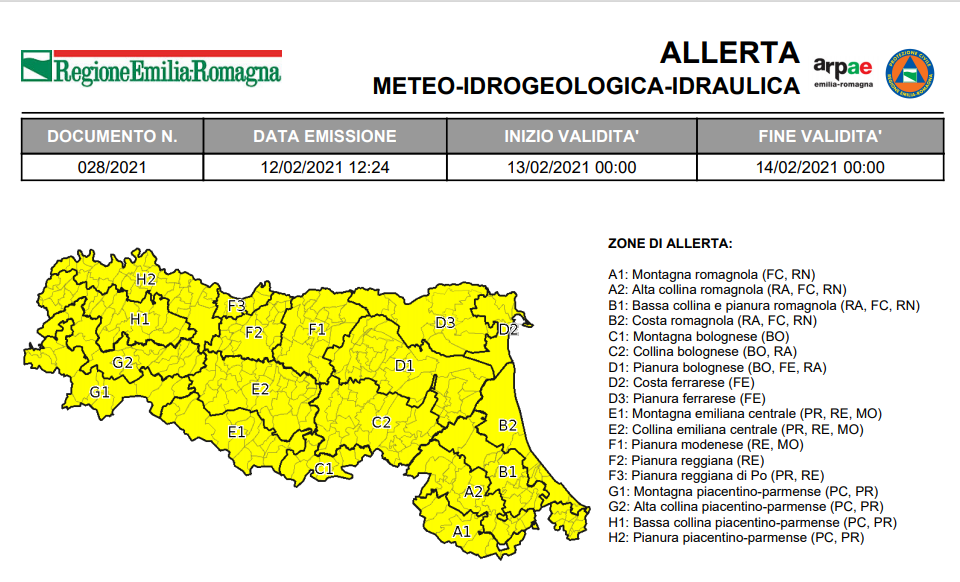 11 Febbraio 2021 Allerta della Protezione Civile: neve, piene dei fiumi La Protezione Civile ha emesso un’allerta valida dalle ore 00:00 di venerdì 12 alle ore 00:00 di sabato 13 febbraio...