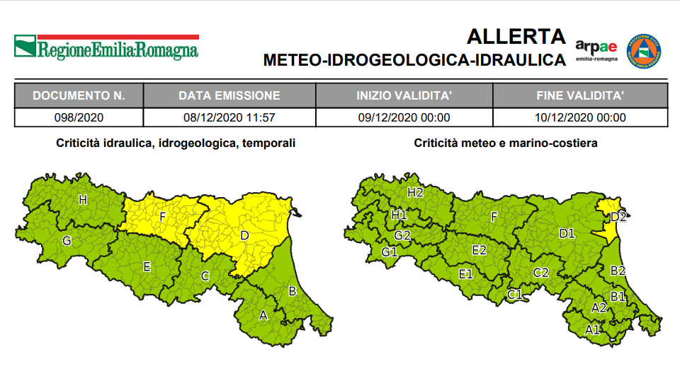 09 Dicembre 2020 Allerta di Protezione Civile: piene dei fiumi, frane, mareggiate La Protezione Civile ha emesso un’allerta di Protezione Civile valida dalle ore 12:00 di mercoledì 9 dicembre alle ore 00:00...