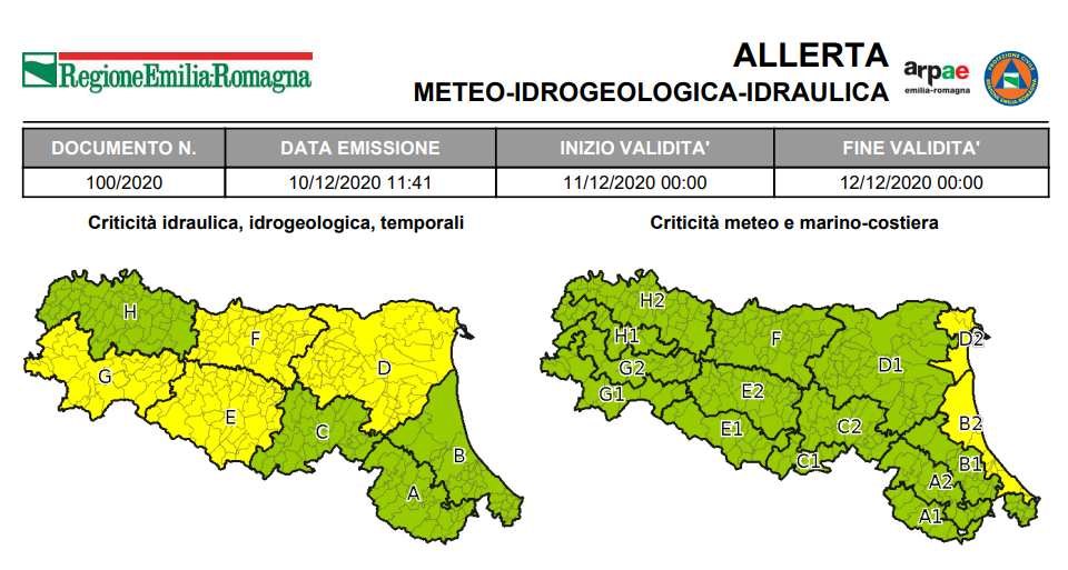10 Dicembre 2020 Allerta della Protezione Civile: piene dei fiumi, frane e mareggiate La Protezione Civile ha emesso un’allerta valida dalle ore 00:00 di venerdì 11 dicembre alle ore 00:00 di sabato 12...