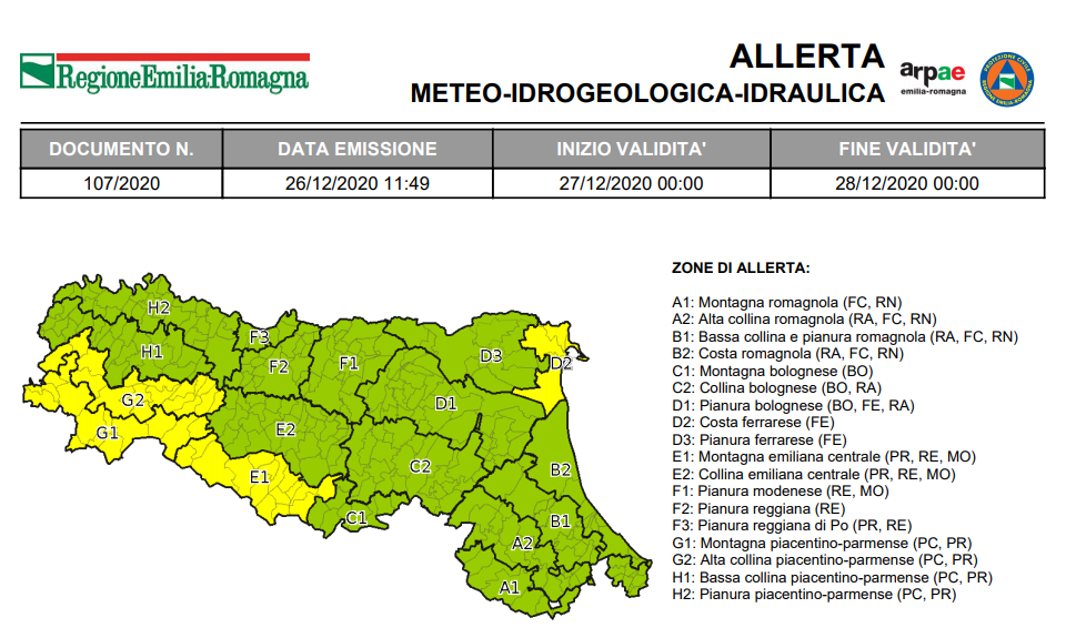 27 Dicembre 2020 Allerta della Protezione Civile: vento, neve, gelicidio, piene e altri fenomeni La Protezione Civile ha emesso un’allerta valida dalle ore 00:00 di lunedì 28 dicembre alle ore 00:00 di martedì 29...