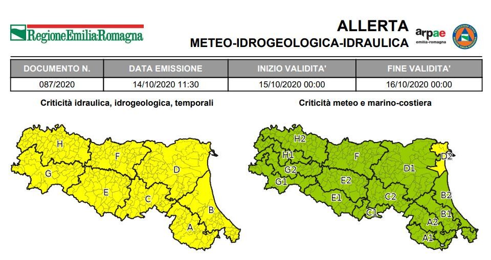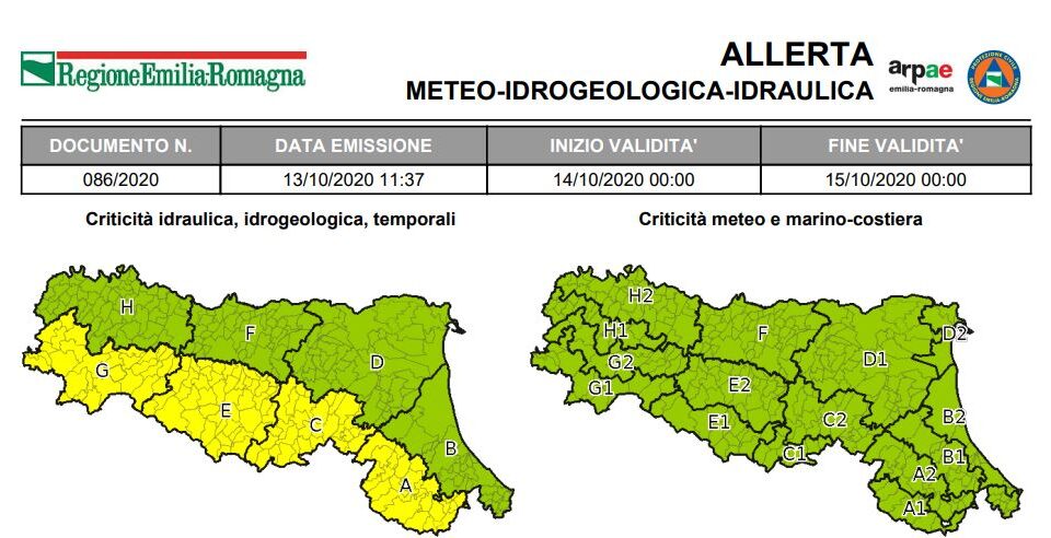 13 Ottobre 2020 Allerta della Protezione Civile: frane e piene dei corsi minori, temporali La Protezione Civile ha emesso un’allerta valida dalle ore 00:00 di Mercoledì 14 ottobre alle ore 00:00 di Giovedì 15...