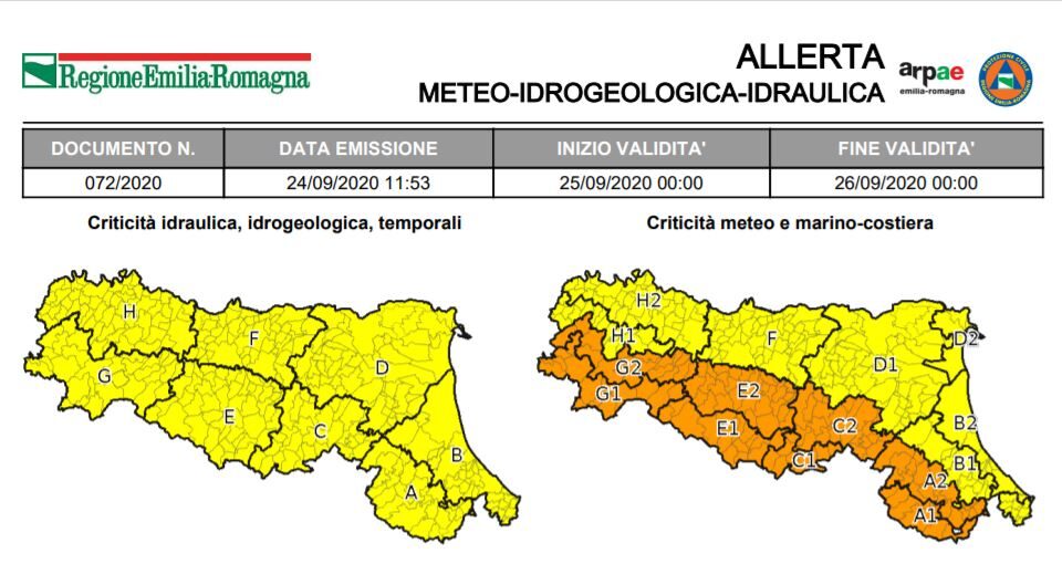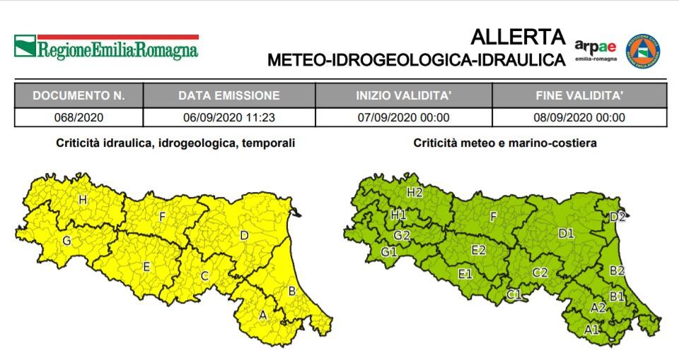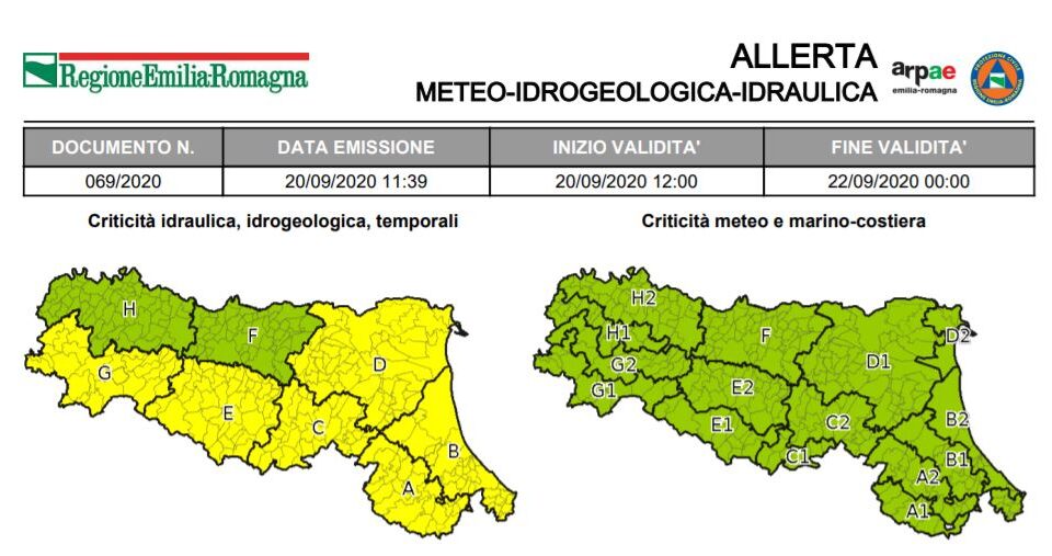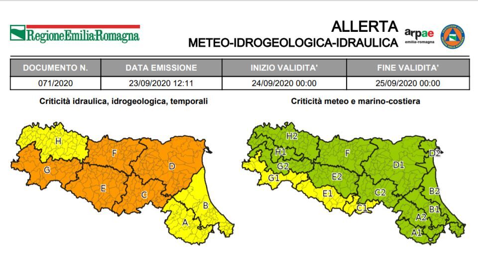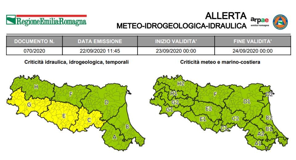22 Settembre 2020 Allerta della Protezione Civile: frane e piene dei corsi minori, temporali La Protezione Civile ha emesso un’allerta valida dalle ore 00:00 di Mercoledì 23 Settembre alle ore 00:00 di Giovedì 24...