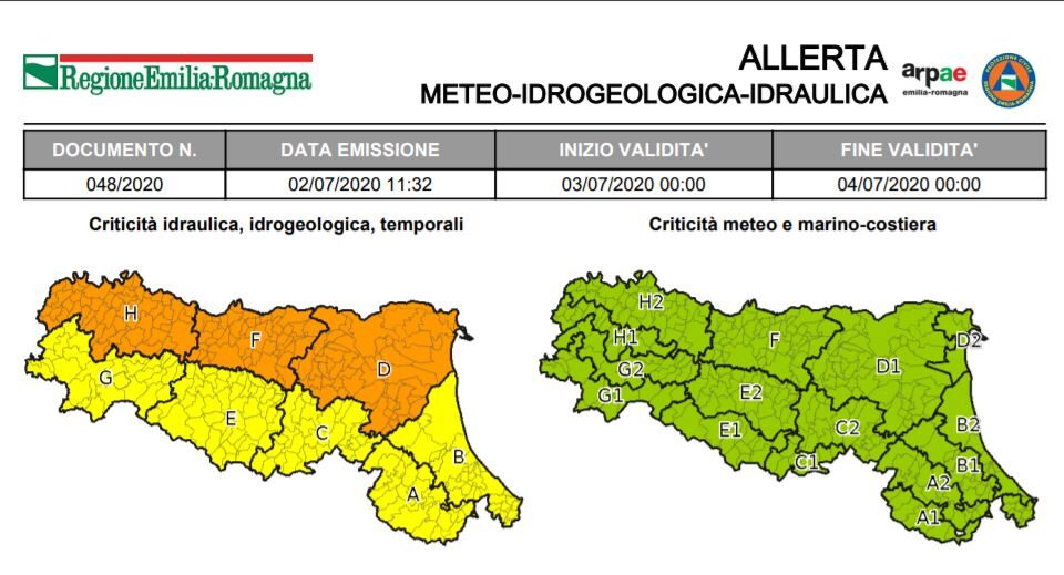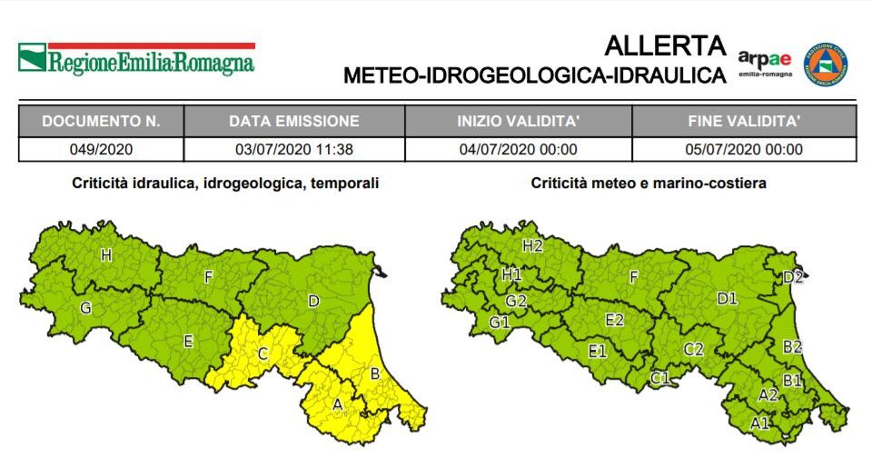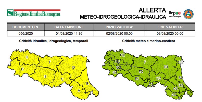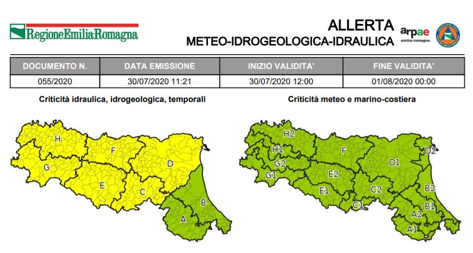 30 Luglio 2020 Allerta della Protezione Civile: temporali La Protezione Civile ha emesso un’allerta valida dalle ore 12:00 di Giovedì 30 Luglio alle ore 00:00 di Sabato 1...