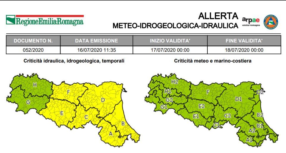 16 Luglio 2020 Allerta della Protezione Civile: temporali La Protezione Civile ha emesso un’allerta valida dalle ore 00:00 di Venerdì 17 Luglio alle ore 00:00 di Sabato 18...