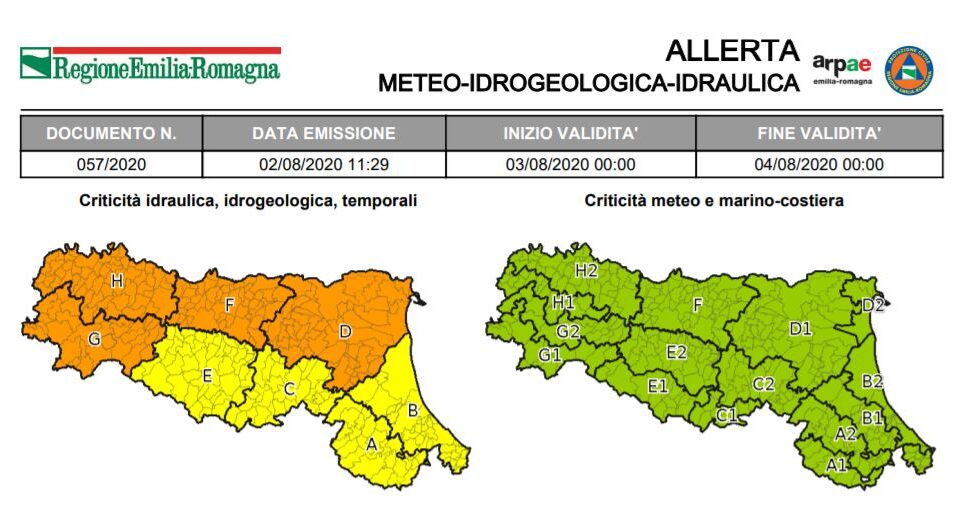 02 Agosto 2020 Allerta della Protezione Civile: temporali, piene dei fiumi e dei corsi minori, frane La Protezione Civile ha emesso un’allerta valida dalle ore 00:00 di Lunedì 3 Agosto alle ore 00:00 di Martedì 4...