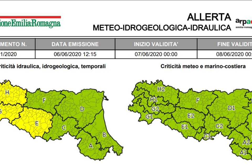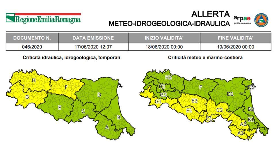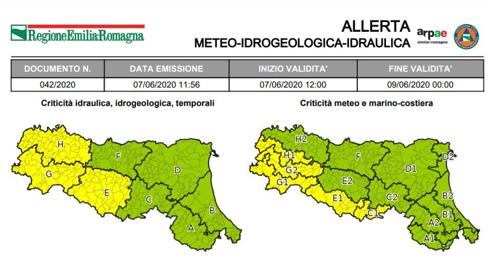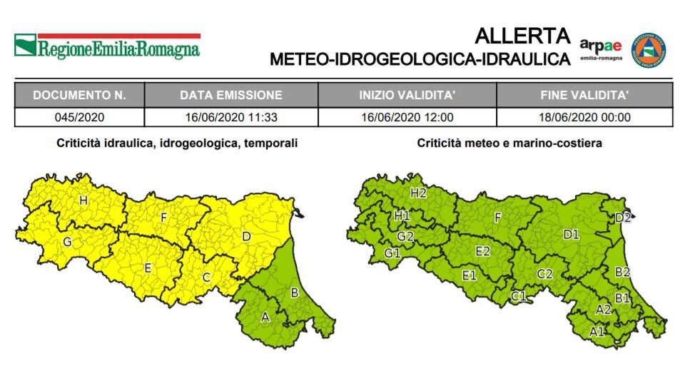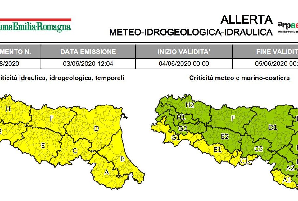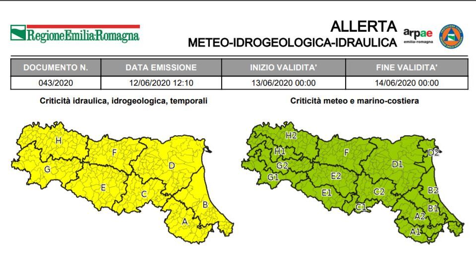 12 Giugno 2020 Allerta della Protezione Civile: temporali La Protezione Civile ha emesso un’allerta meteo valida dalle ore 00:00 di Sabato 13 Giugno alle ore 00:00 di Domenica...