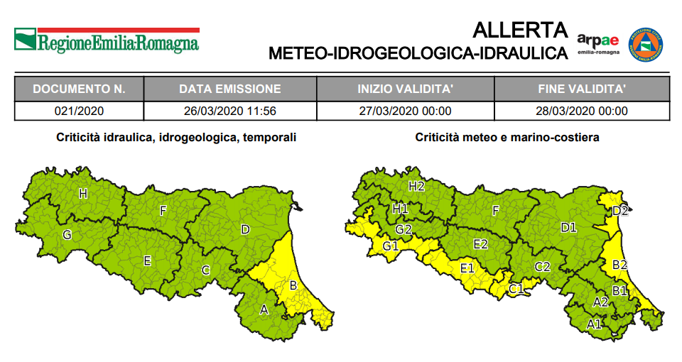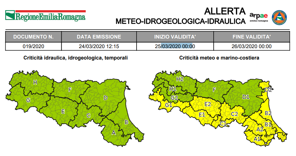 26 Marzo 2020 Allerta della Protezione Civile: piene dei fiumi, vento, stato del mare La Protezione Civile ha emesso un’allerta valida dalle ore 00:00 di Venerdì 27 Marzo alle ore 00:00 di Sabato 28...