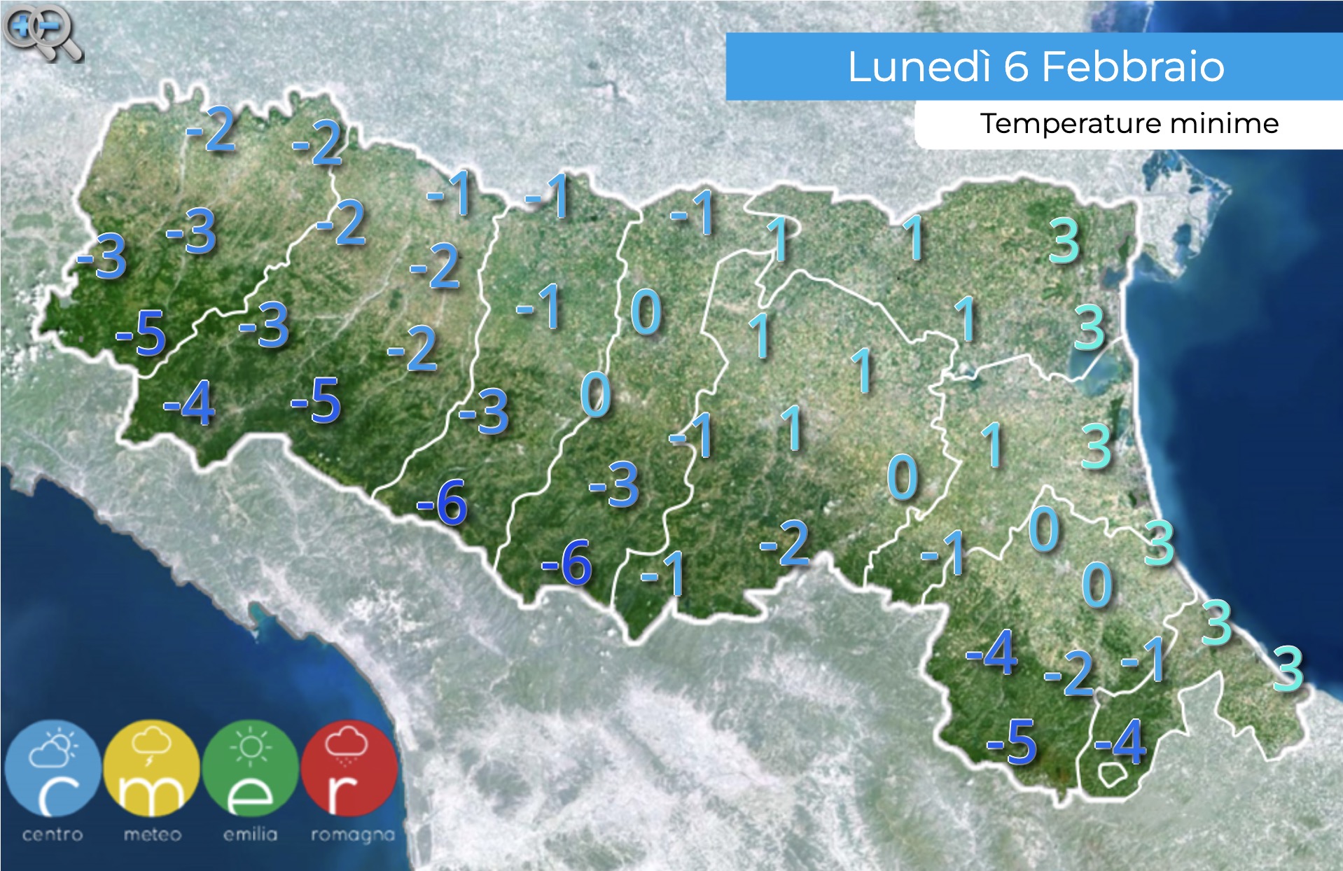 Ed ecco che tra Lunedì 6 e Martedì 7 Febbraio sono previste temperature minime attorno a -2/-4 gradi sulle aree di pianura e valori ancora inferiori nelle zone montane, con gelate diffuse. Sulle aree di alta collina e appenniniche probabili giornate di ghiaccio con temperature rigide per l’intero arco del giorno e con massime uguali o inferiori a zero gradi.
