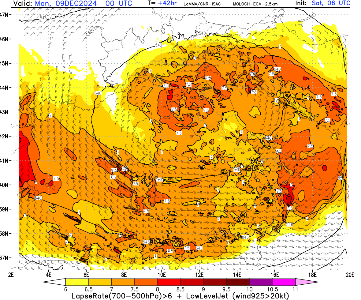 La formazione di un centro di bassa pressione sul Golfo Ligure favorirà tempo spiccatamente perturbato per domenica 8 dicembre, con nevicate fino a quote collinari sull’Emilia centro-occidentale. Le precipitazioni proseguiranno anche nella giornata di lunedì 9 dicembre, pur interessando più intensamente la Romagna, con accumuli di neve che sui rilievi emiliani potranno risultare prossimi o superiori al mezzo metro.