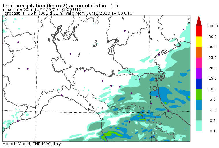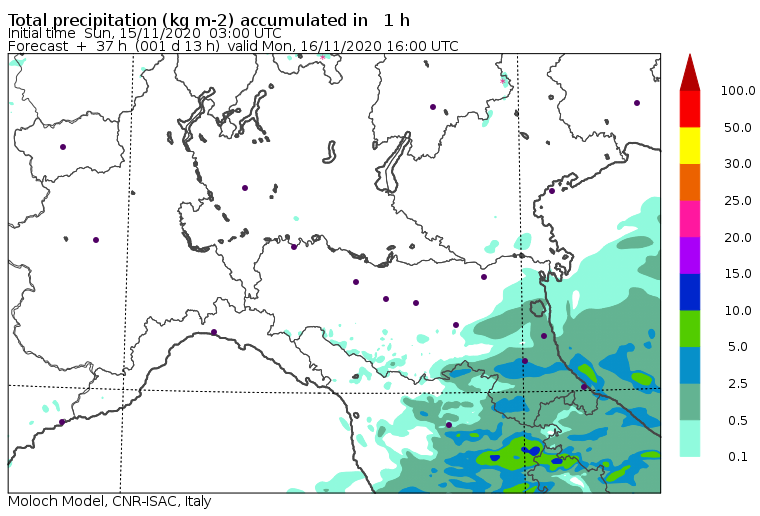 Le piogge risulteranno maggiormente persistenti e di intensità debole/moderata sulla Romagna nel corso delle ore pomeridiane, con residui fenomeni probabili anche in serata. Attenuazione tra seconda parte di serata e notte verso martedì 17 novembre.