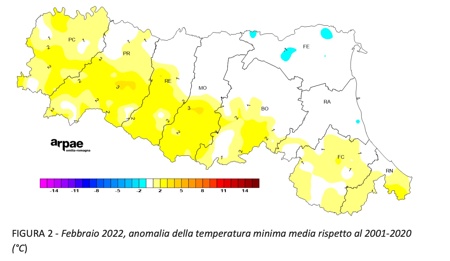 Il mese di febbraio 2022 è risultato avaro di precipitazioni, confermando il trend instauratosi negli ultimi mesi. Inoltre sul territorio regionale le temperature sono state decisamente miti per il periodo.