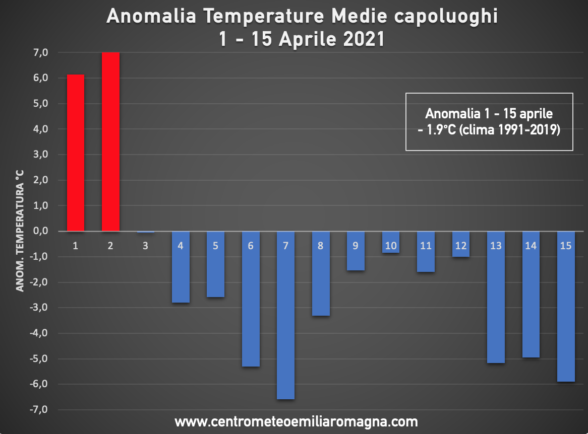 - Grafico anomalie di temperatura dal 1 al 15 aprile