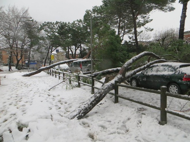 -tra le zone di Faenza e Imola prima è nevicato e successivamente piovuto incrementando così i disagi a causa di neve molto pesante.