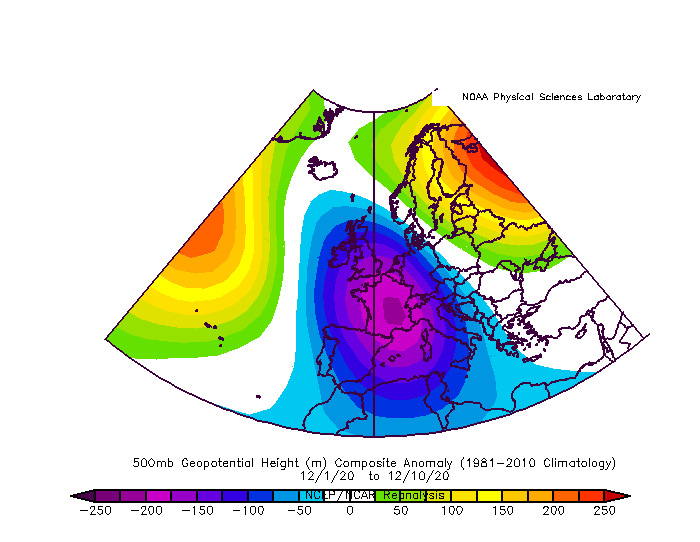 Figura 1| Anomalia di altezza del geopotenziale durante il periodo 1-10 dicembre 2020