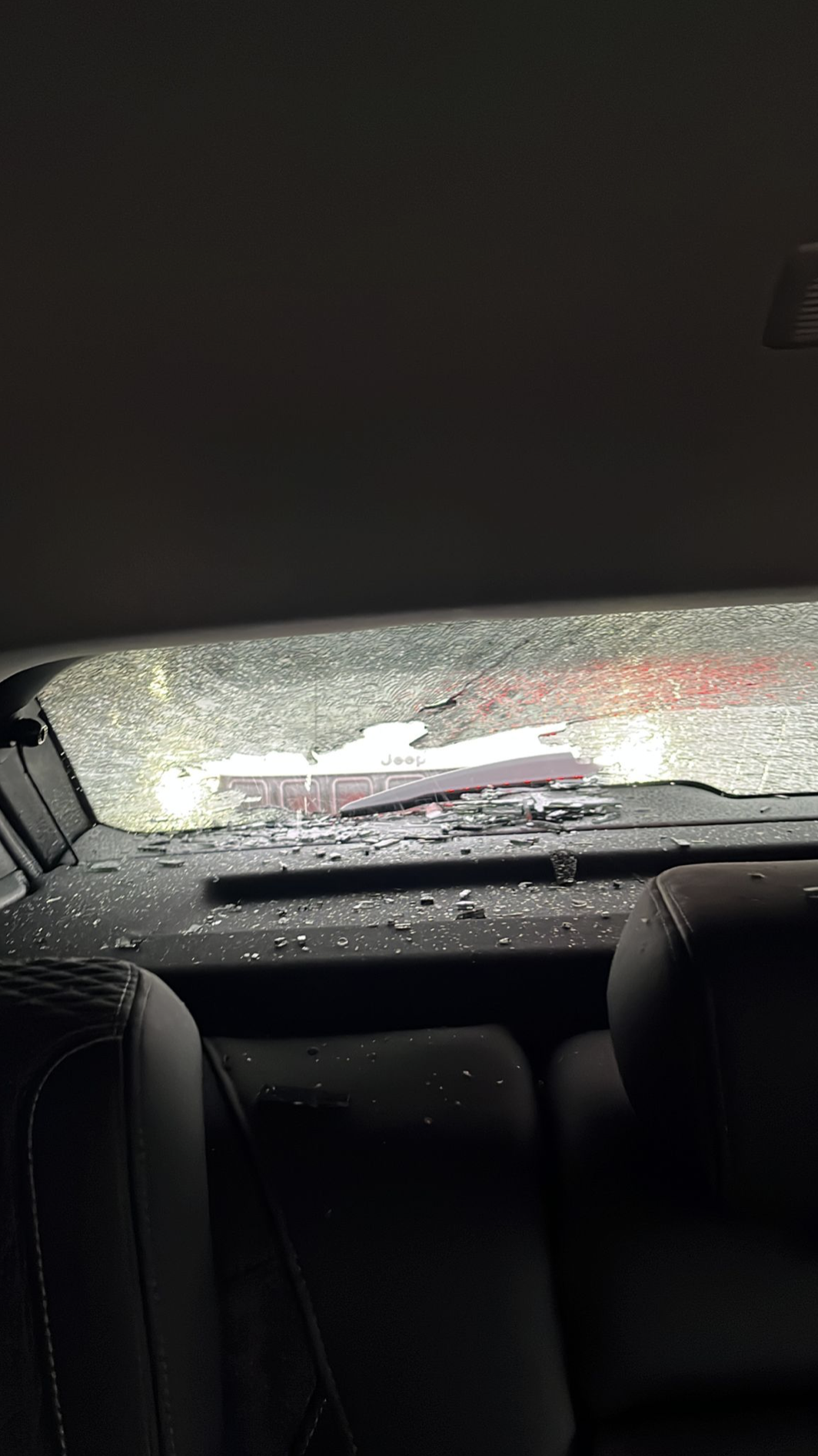 - Vetri sfondati dalla grandine in autostrada, foto di Federico Brancolini