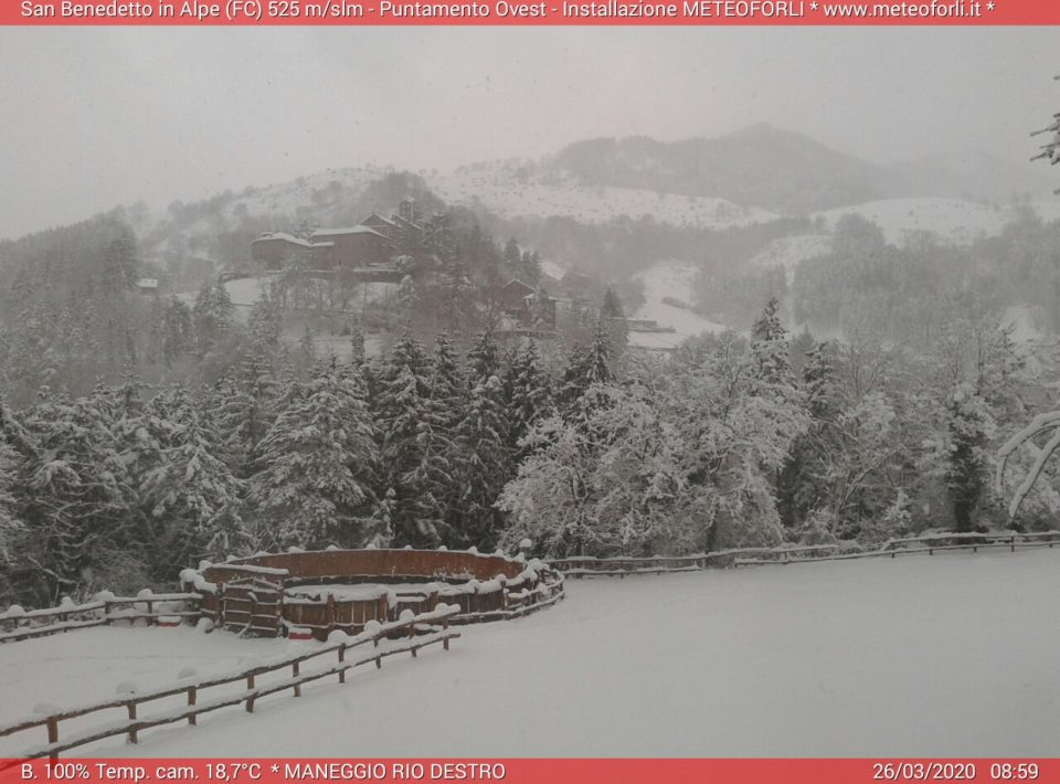 26 Marzo 2020 Neve abbondante sull’Appennino Romagnolo Neve abbondante sull’Appennino Romagnolo, con gli accumuli dai 200-250 metri in su e locali cumulate a quote inferiori. Fenomeni in...