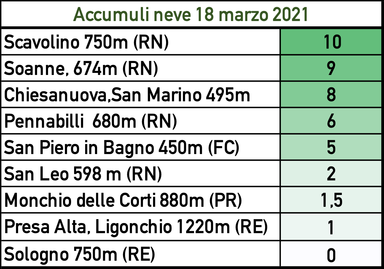 Nella giornata di oggi, giovedì 18 marzo 2021, la nostra regione ha subito gli effetti della discesa di aria più fredda da Nord-Est, responsabile di un generale calo delle temperature e di alcune precipitazioni, localmente a sfondo temporalesco e con nevicate fino a quote medio-basse.