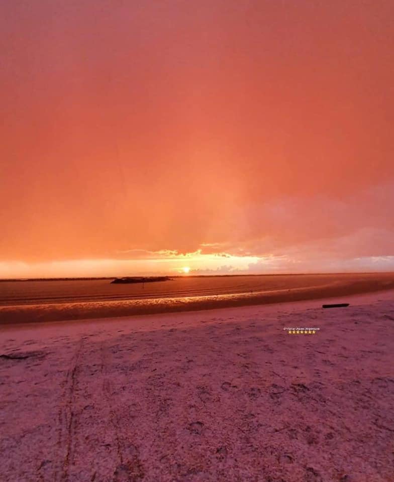 - La spiaggia di Bellaria Igea Marina imbiancata da graupel all’alba