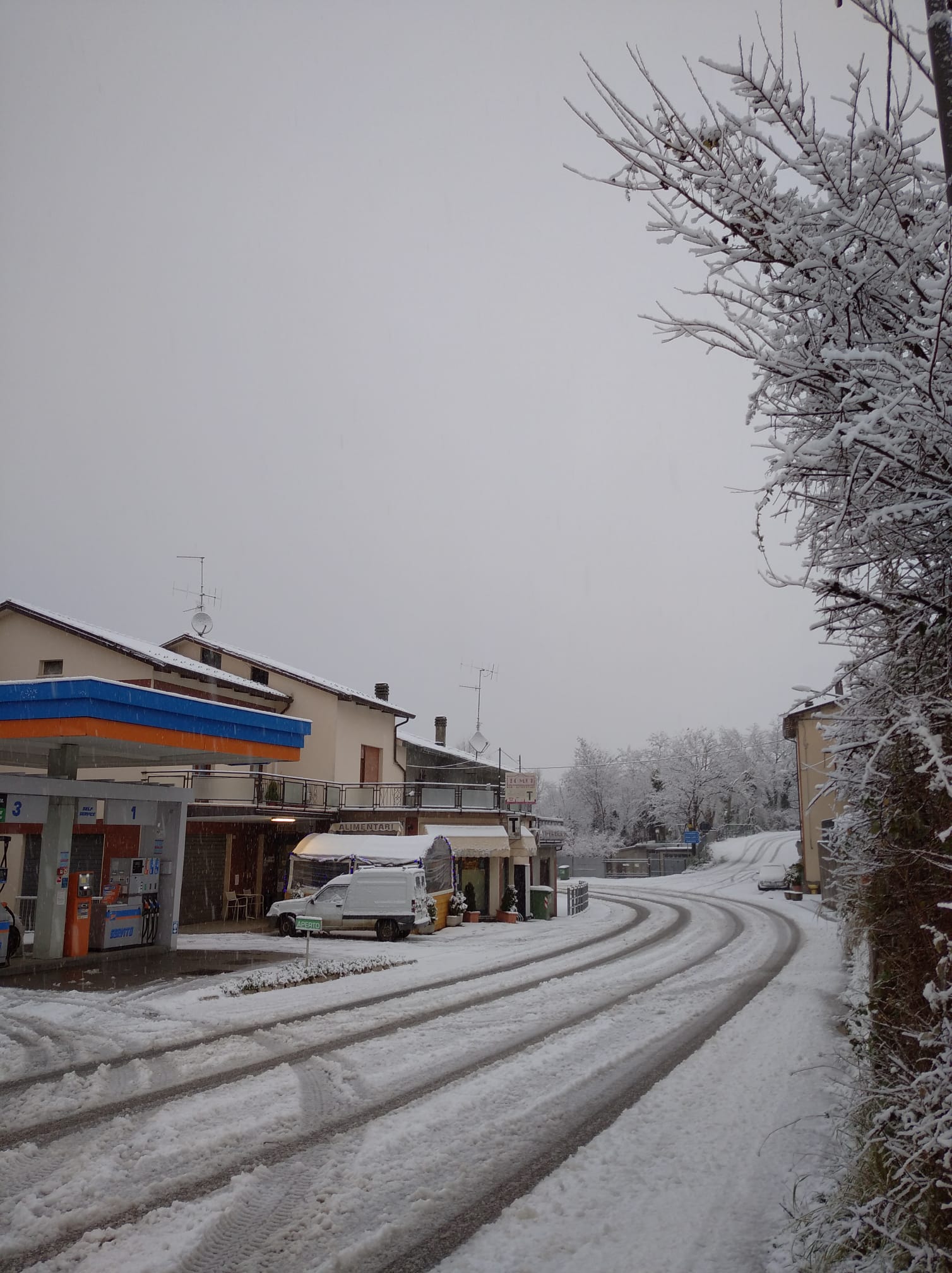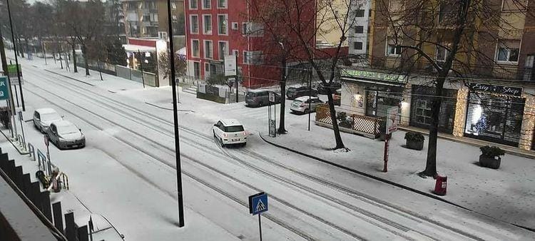 - La Via Emilia a Modena imbiancata da una coltre bianca di grandine e neve tonda (graupel)