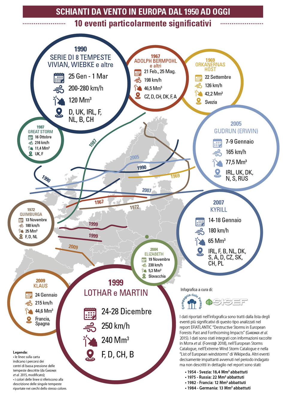 Considerando il periodo dal 1950 ad oggi sul comparto europeo, Vaia non primeggia tra le tempeste più significative, nonostante sia risultata eccezionale per il contesto italiano.