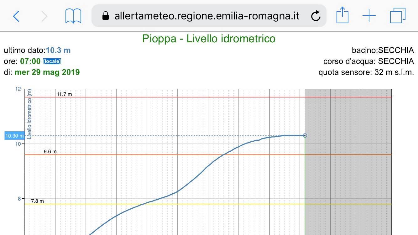 Per quanto riguarda i corsi d’acqua maggiori sono due le situazioni maggiormente critiche, l’Arda in località Fiorenzuola d’Arda e il Secchia nel territorio Modenese, con la piena in transito verso le basse. In entrambi i casi il livello idrometrico è superiore alla soglia di criticità 2.