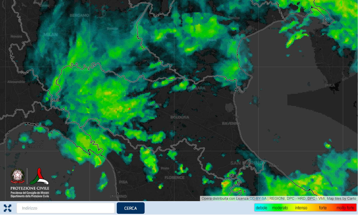 Precipitazioni moderate, localmente più intense, interessano i settori centro-occidentali della regione, in maniera più consistente tra Parmense e Reggiano, specie verso i rilievi.