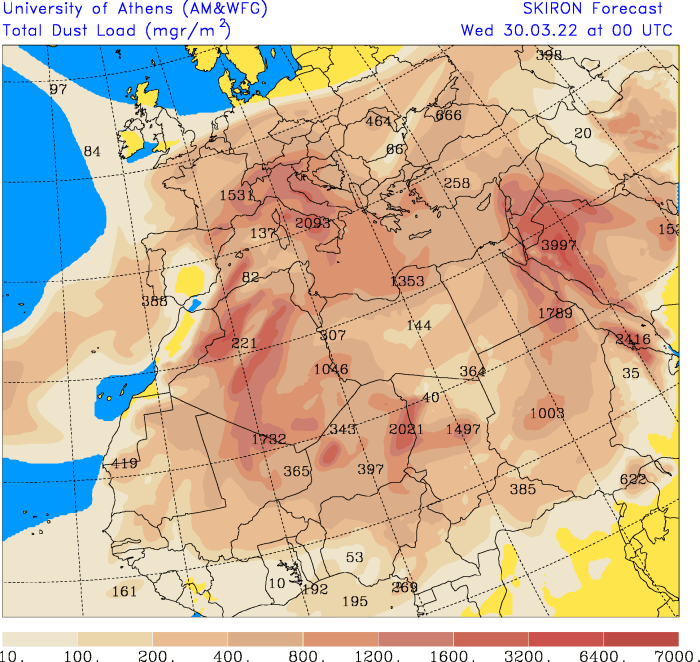 La perturbazione in risalita dal basso Mediterraneo interesserà da domani, Mercoledì 30 Marzo, la Penisola Italiana portando piogge ma con esse anche alte concentrazioni di polveri Sahariane in sospensione richiamate da venti sud-occidentali.