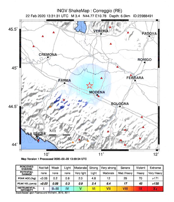 Alle ore 14:31 si è registrata una scossa di terremoto di magnitudo 3.4 ML secondo i dati INGV con epicentro in località Correggio nel reggiano.