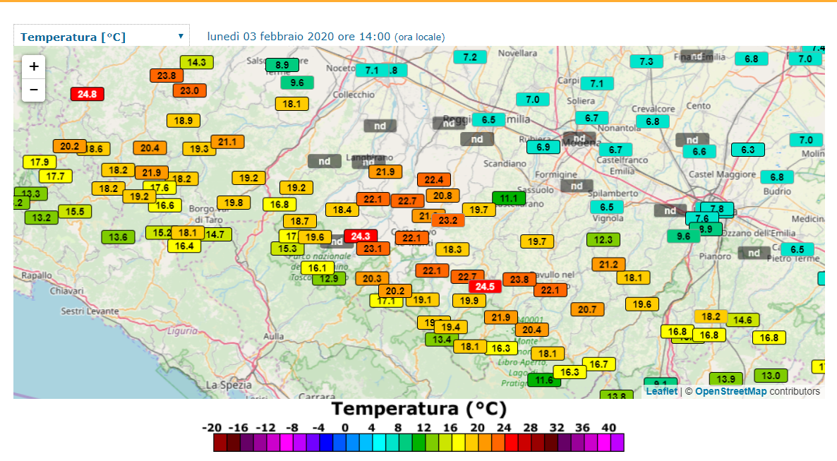 - Ligonchio (RE) +20.4°C (battuto il record di Febbraio di +20.0°C sulla serie 1961-2015)