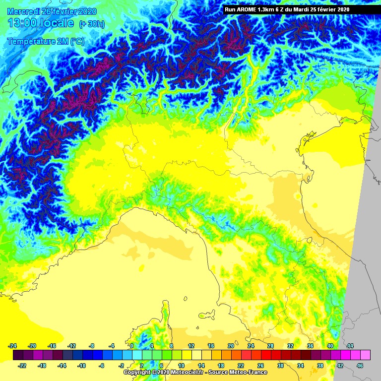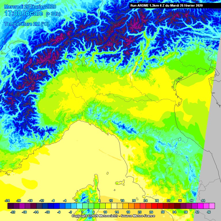 Tale situazione è destinata però a durare poco, con un deciso calo termico atteso nel corso della giornata di Mercoledì 26 Febbraio.