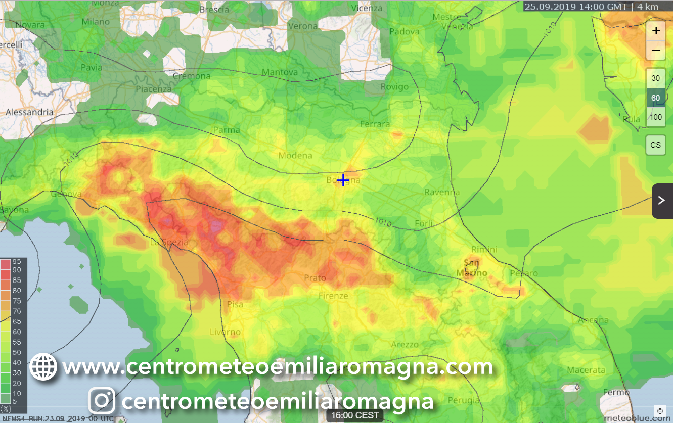 Un nuovo passaggio instabile è atteso difatti per Mercoledì 25 Settembre, con precipitazioni tendenzialmente irregolari ad interessare specialmente le aree orientali della regione.