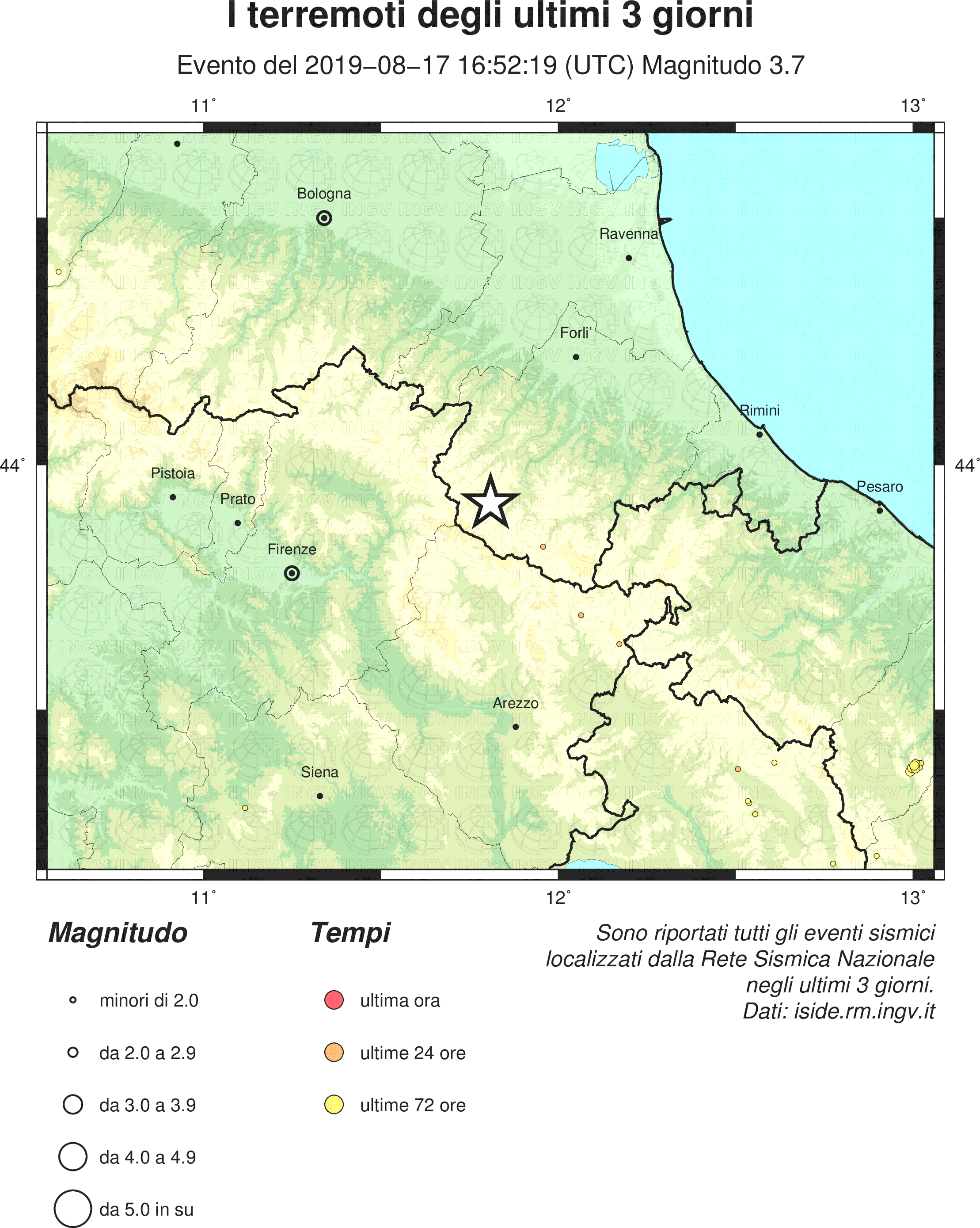 Un terremoto di magnitudo ML 3.7 è avvenuto nella zona: 7 km SE Premilcuore (FC), il